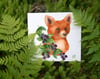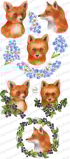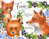 Cute foxes with blue flowers garlands and blackberry wreaths. Woodland plants and forest animals