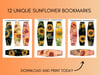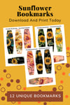 12 Sunflower Bookmarks | Printable Sunflower Bookmarks | Set Of Floral Bookmarks | Sunflower Page Holders