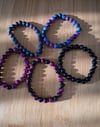 A stunning tiger eye purple glass bead bracelet best paired with a dress!