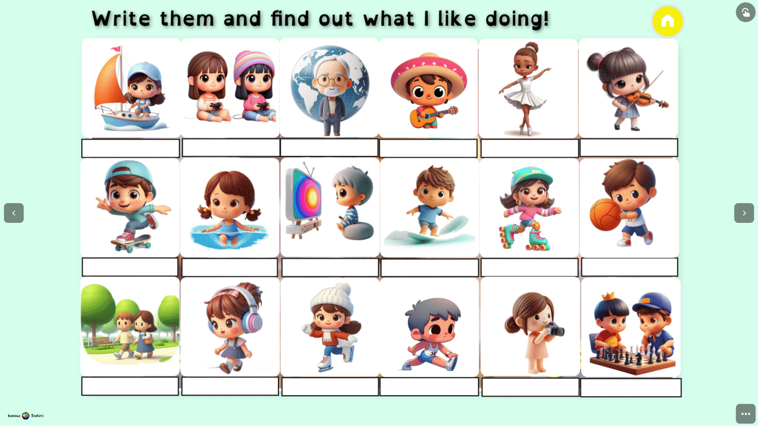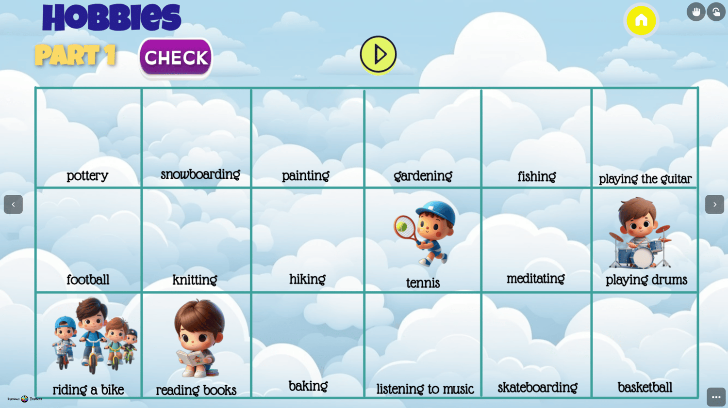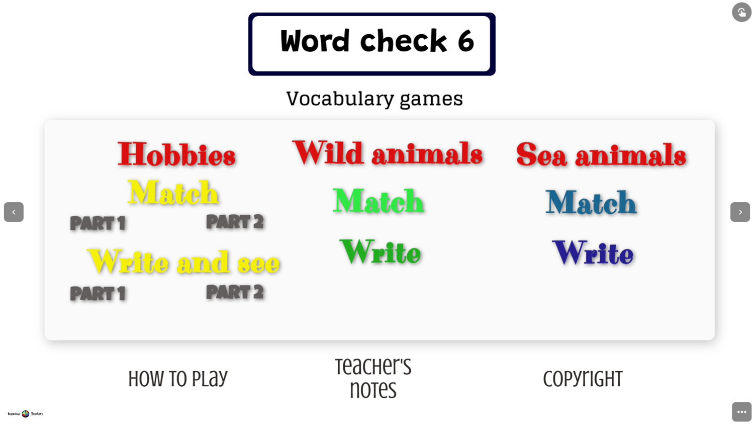 Let’s play some words. Here comes another set of nice vocab for kids. Check the match activities or practice writing. Open, click and play. Discover fun pictures to give your lessons more color. It’s all ready to go. Have fun with our interactive presentation. No prep, pure fun!