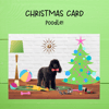 This is an adorable Christmas Holiday card that features a fancy Black Poodle enjoying his presents!