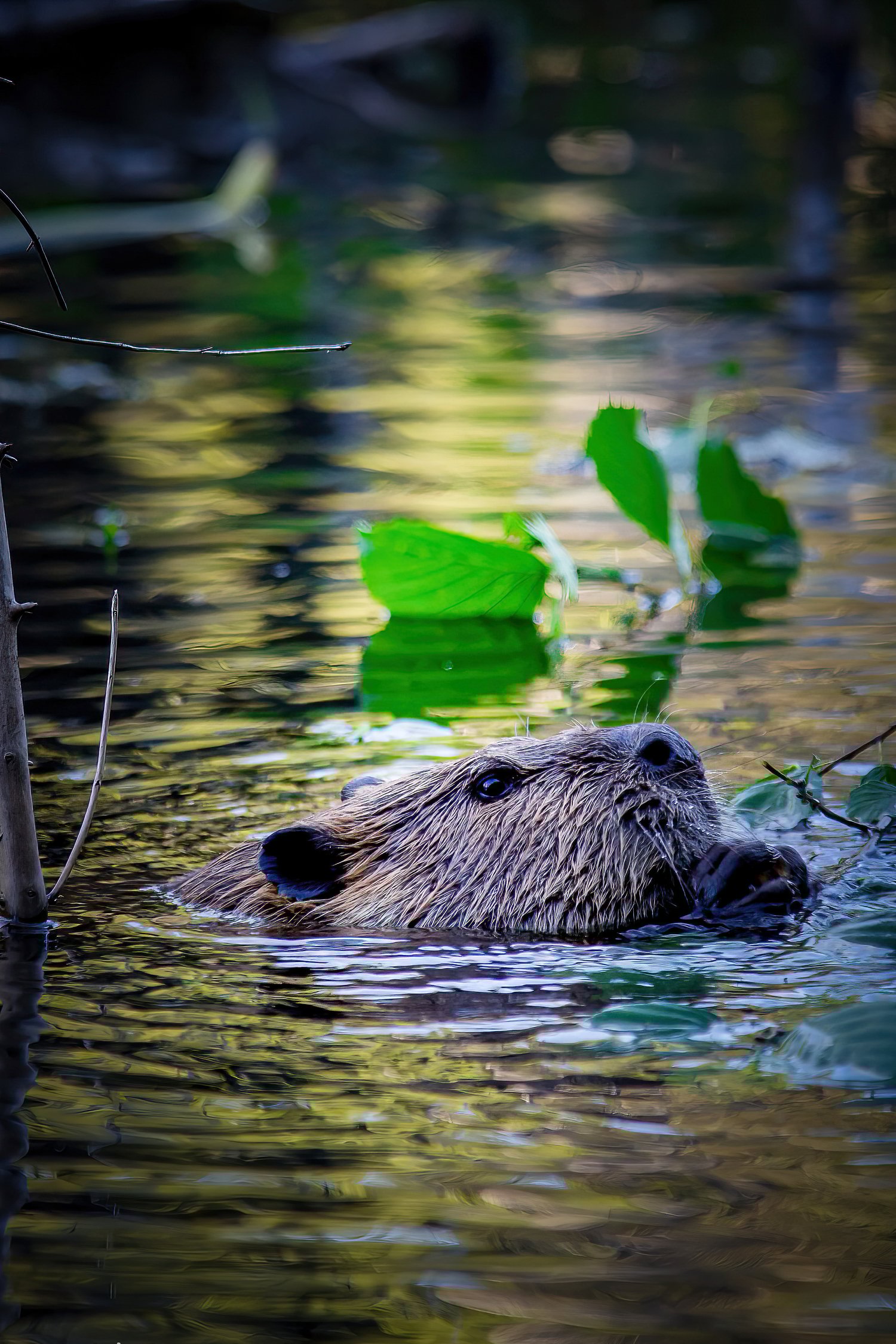An adult beaver eats wound leaves. These are its greatest delicacies.