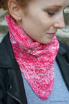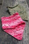 This bandana cowl is knitted from the bottom up. Starting at the tip, you knit the diamond pattern in rows and later cast on a few stitches to close the triangle into a tube and work in rounds.