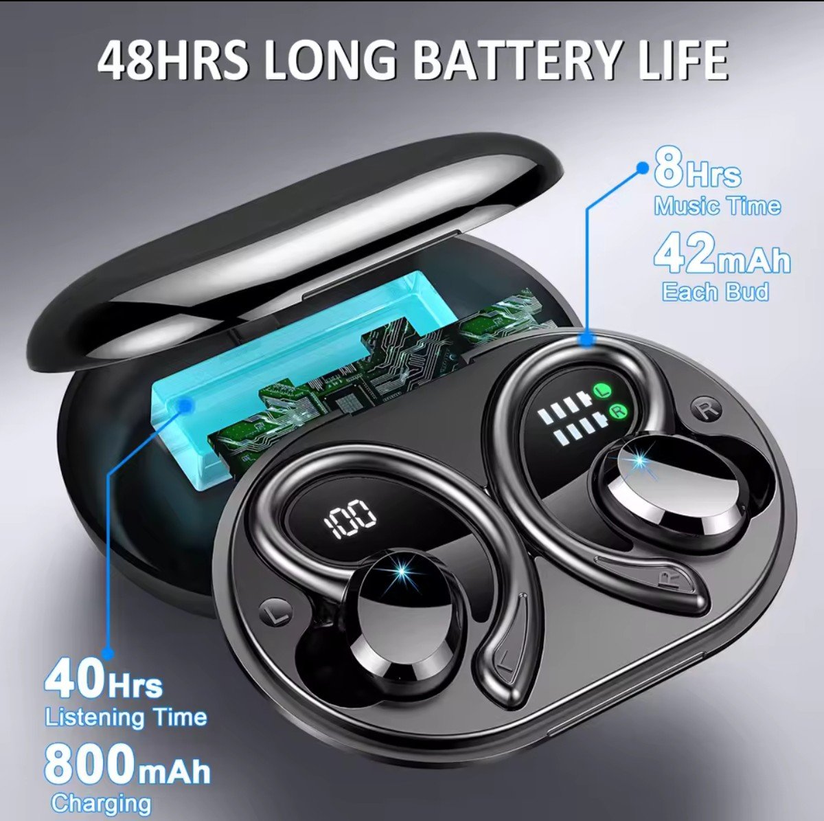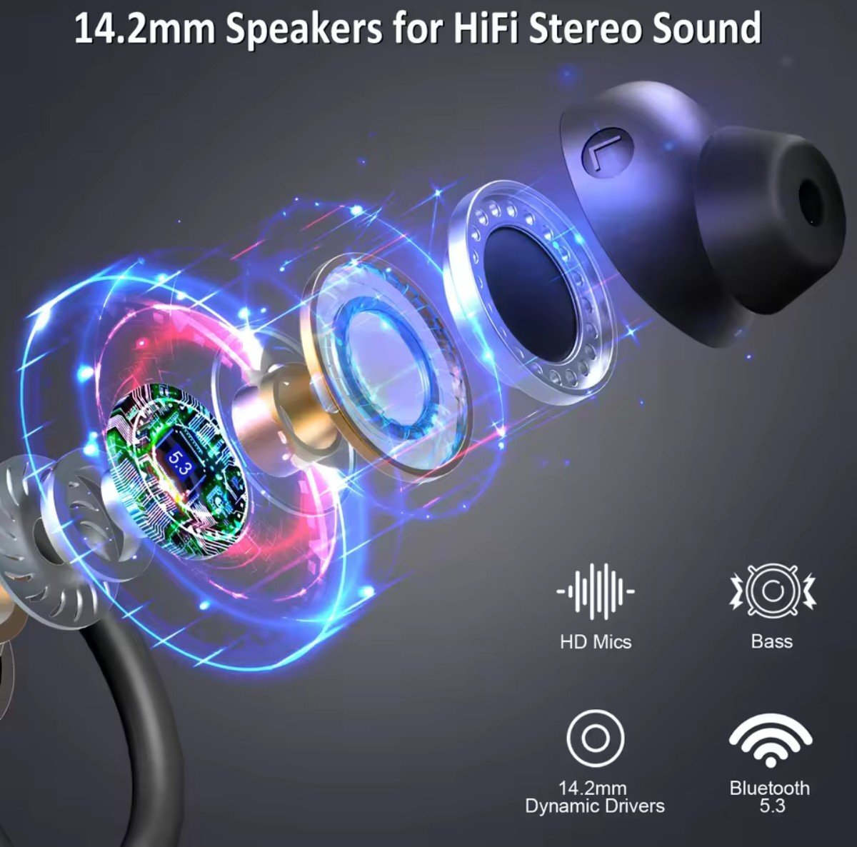Wireless Earbuds, Bluetooth 5.3 On Ear Headset, Noise Cancelling Mic, 48H Playtime Sport Headphones