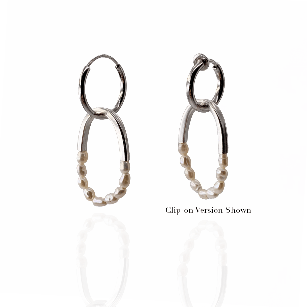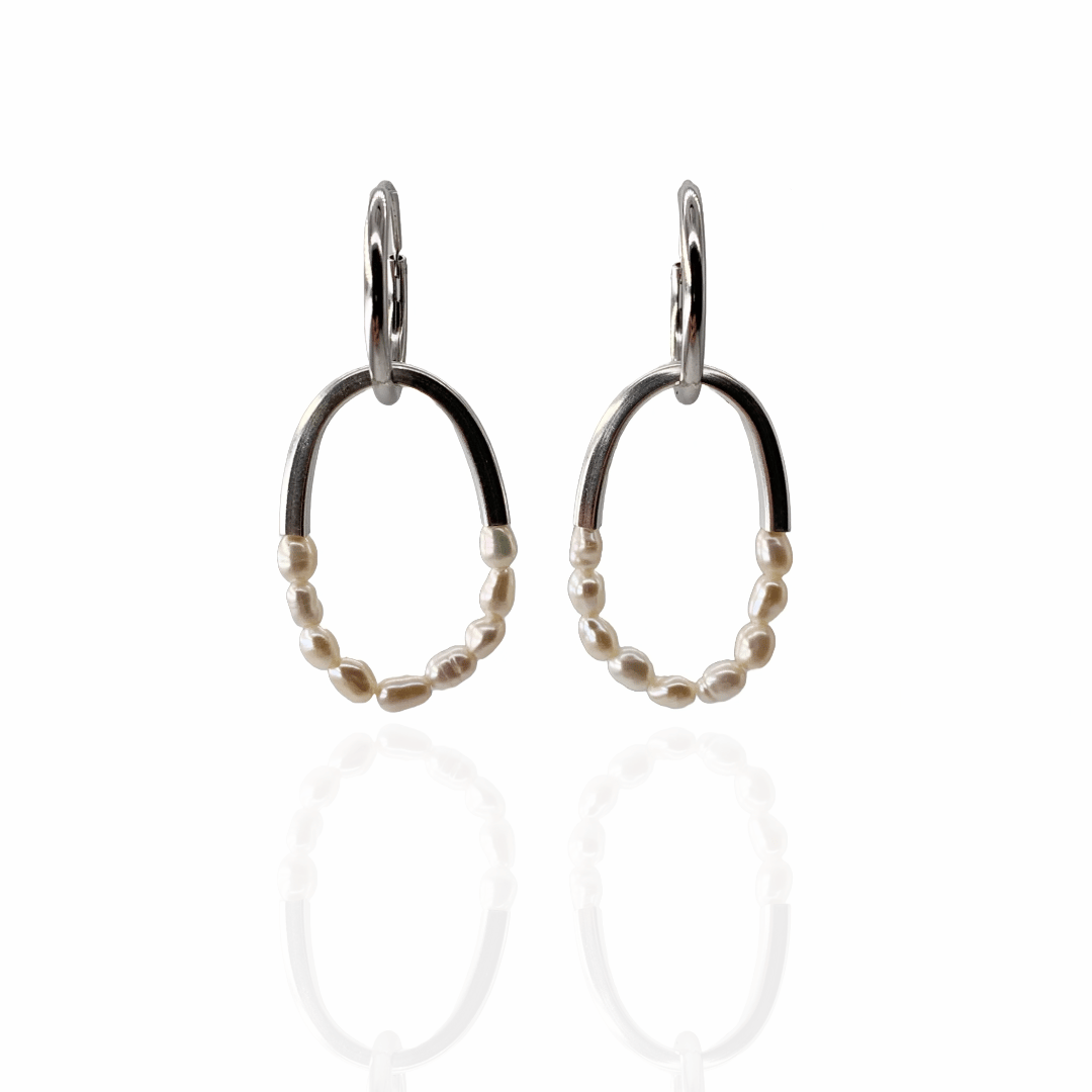 Silver & Half pearl Ellipse Earrings