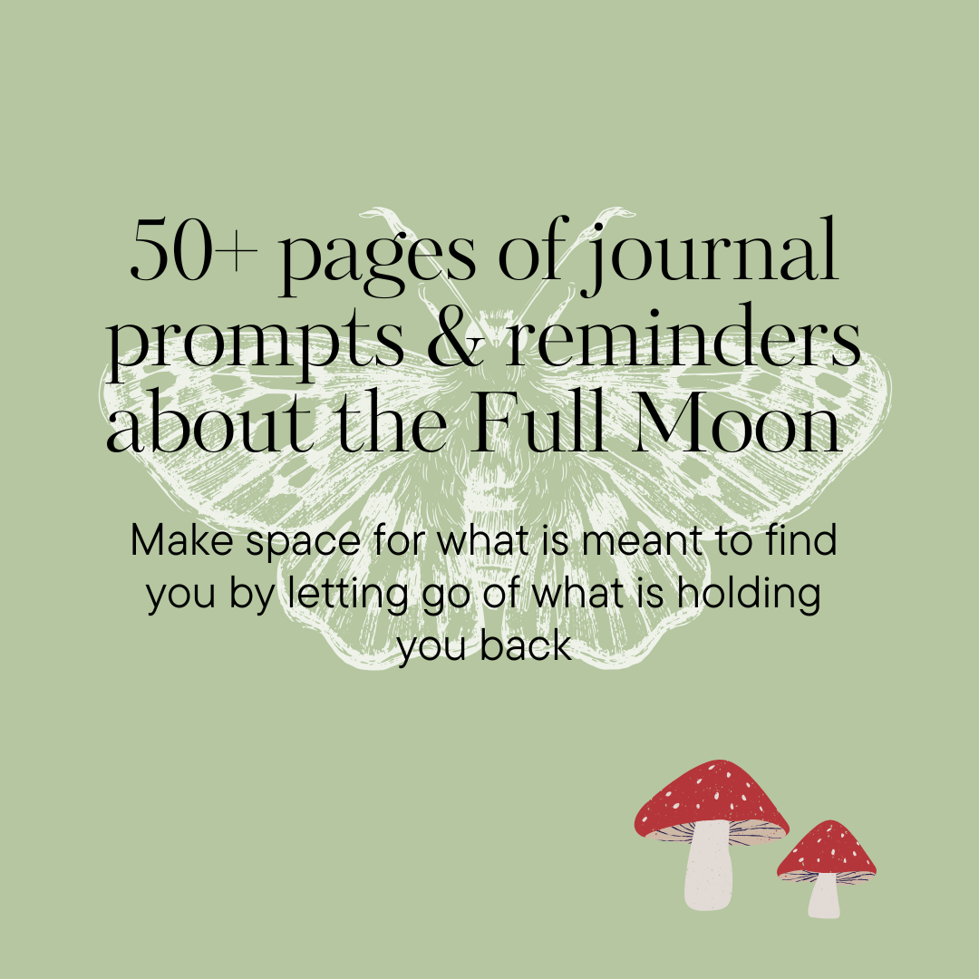 Find various prompts inviting in self-reflection and release. Full Moons are the most optimal time to let go of what no longer serves you- flow with the moon and watch your world change. You can print out as many times to use over and over again!