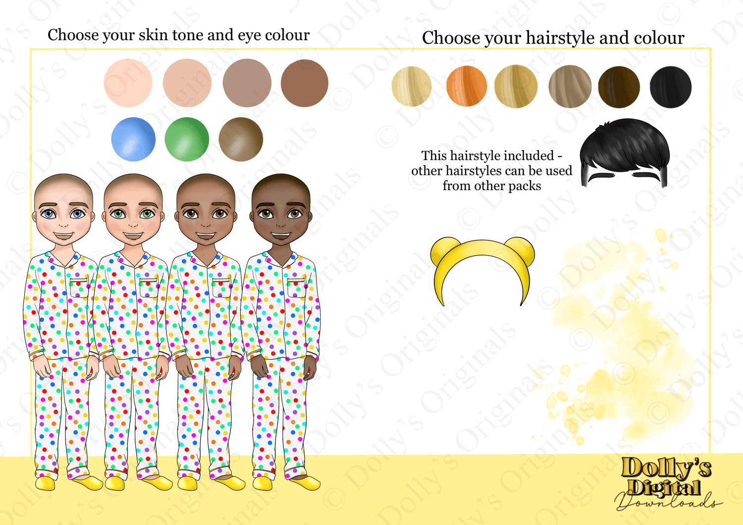 Instant digital download of our Bright Dotty Pyjamas Teen Boy Character Bundle PNG (19 PNG’s)