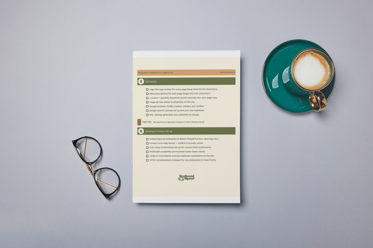 This step-by-step checklist covers every stage of launching a therapist website, created by a licensed therapist who is also a website designer. Whether you're starting from scratch or giving your current site a much-needed glow-up, this guide has you covered.