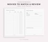 Movies to Watch & Review Template for Remarkable, Supernote, Kindle Scribe, Boox, Kobo