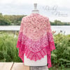 The shawl is worked in one piece, from the top down. The fade sections are worked so you don’t have to cut the yarn and you’ll have, at most, 2-4 ends to weave in per color worked.Overview of the Finished Object