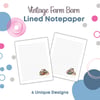 Vintage Farm Barn Lined Stationery | Rustic Barn Lined Notepaper | Vintage Farm Life Writing Paper | Old Barn Penpal Paper