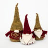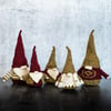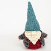 A note on gauge and needle sizes: very few people swatch gnomes. To work the clothes, go up 2 needle sizes from your gnome body.