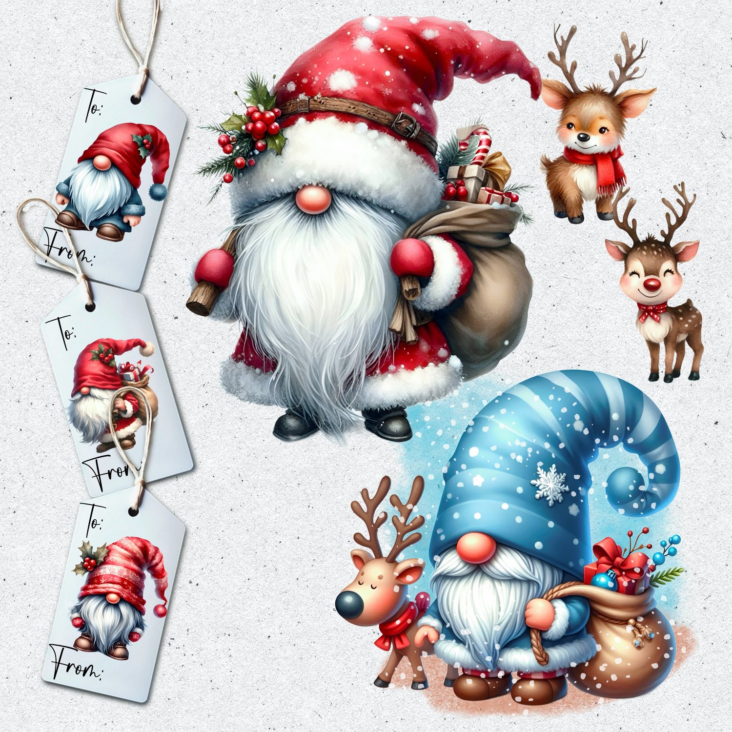 13 gorgeous boy gnomes in red or blue. Included is a watercolour splash optional background and an optional snow overlay. Also included are 2 cute reindeer as clipart to add to your design. 17 PNGs in total. See pictures for more detail. Ideal for Christmas cards and tags, mugs, clothing, cushions, or any other sublimation or print project.