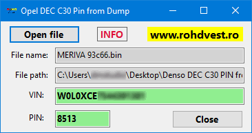Here you have a small software, made by me, which will help you extract the pin from the Denso DEC C30 Opel, Isuzu diesel ECU. Copy the eeprom from the ECU using a bench tuning tool and open it in this software, and it will extract the pin for you.