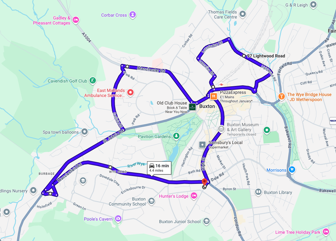Practise real driving test routes in Buxton before your exam – open directly in Google Maps