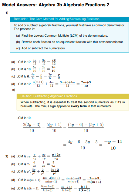 IGCSE Higher Maths: Algebraic Fractions 2 (Worksheet & Model Answers)