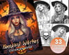 33 Beautiful Witches Coloring Book, Adults + kids- Download - Grayscale Coloring Page - Gift, Printable PDF, Halloween, skulls, beautiful,