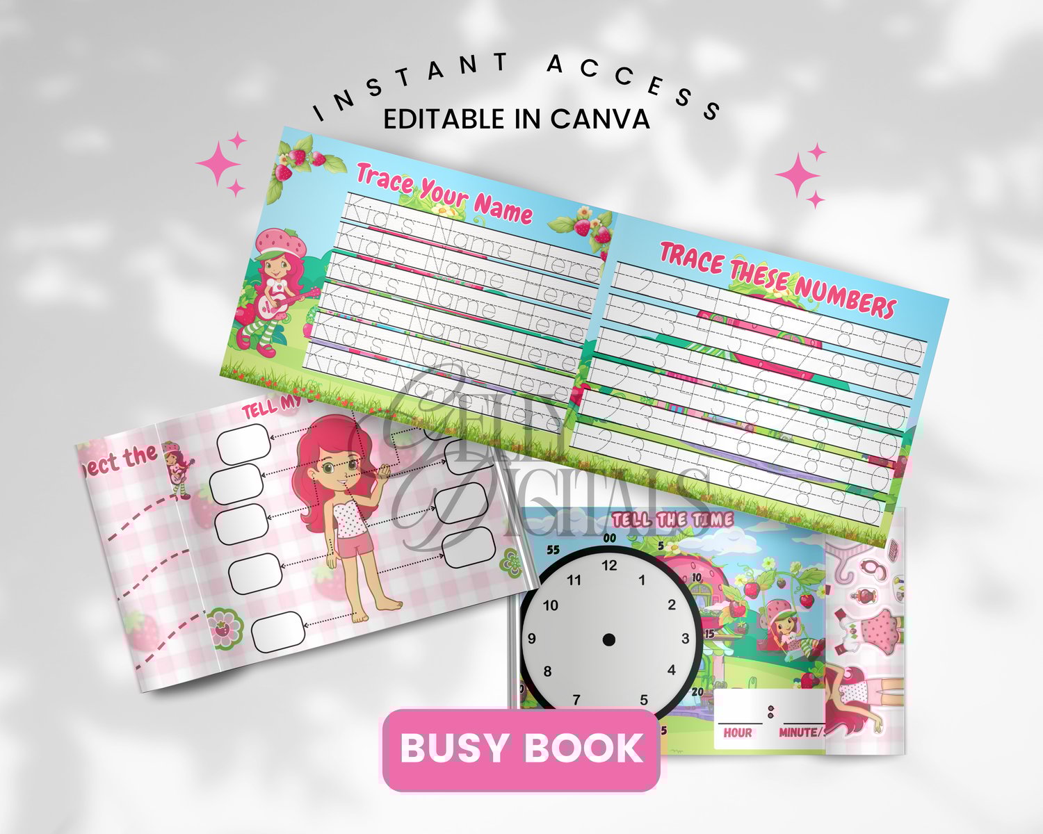 Strawberry Shortcake Busy Book (Editable in Canva) 🍓