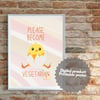 A digital file for printing; Please Become Vegetarian. Funny baby chicken. . Printable wall art. Digital product.