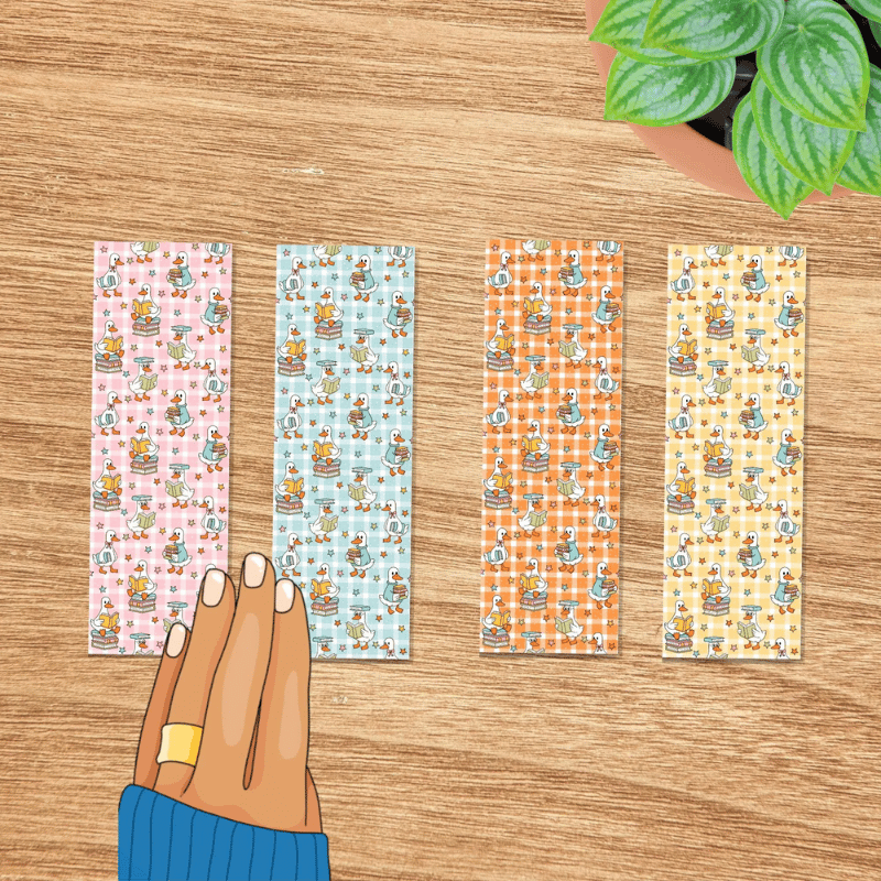 Bookish Geese Printable Bookmarks Sheet 2x6 Print and Cut PDF PNG Craft Prizes Activities, Silly Goose