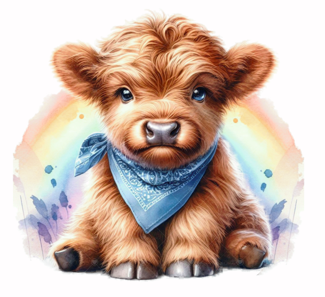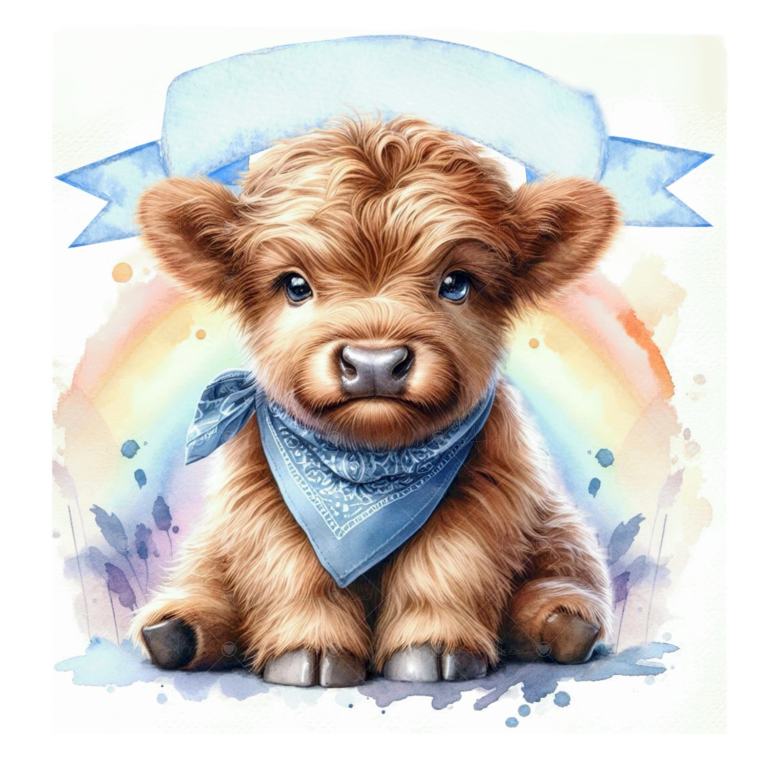 - baby boy cow with rainbow and banner, PNG and JPEG format.