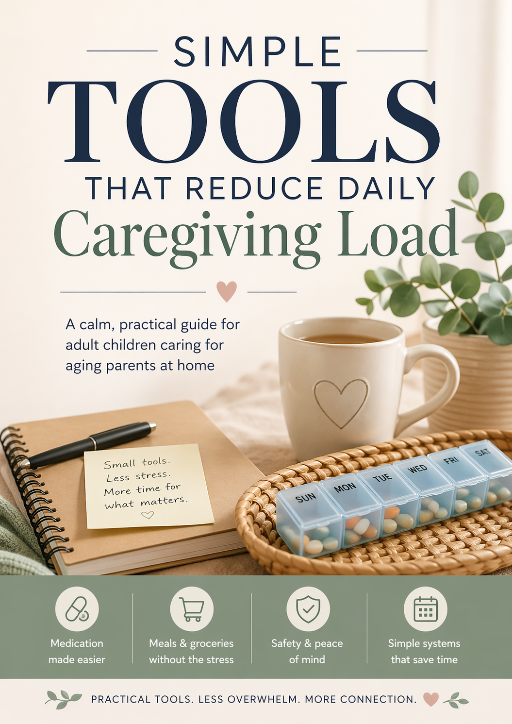 Inside, you’ll find three practical tools that can quickly reduce daily stress around medications, meals, and scheduling — without adding complexity or taking away independence.