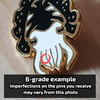 As enamel pins are handmade items, small imperfections can occur. I carefully inspect every single pin and sort them into different quality categories.