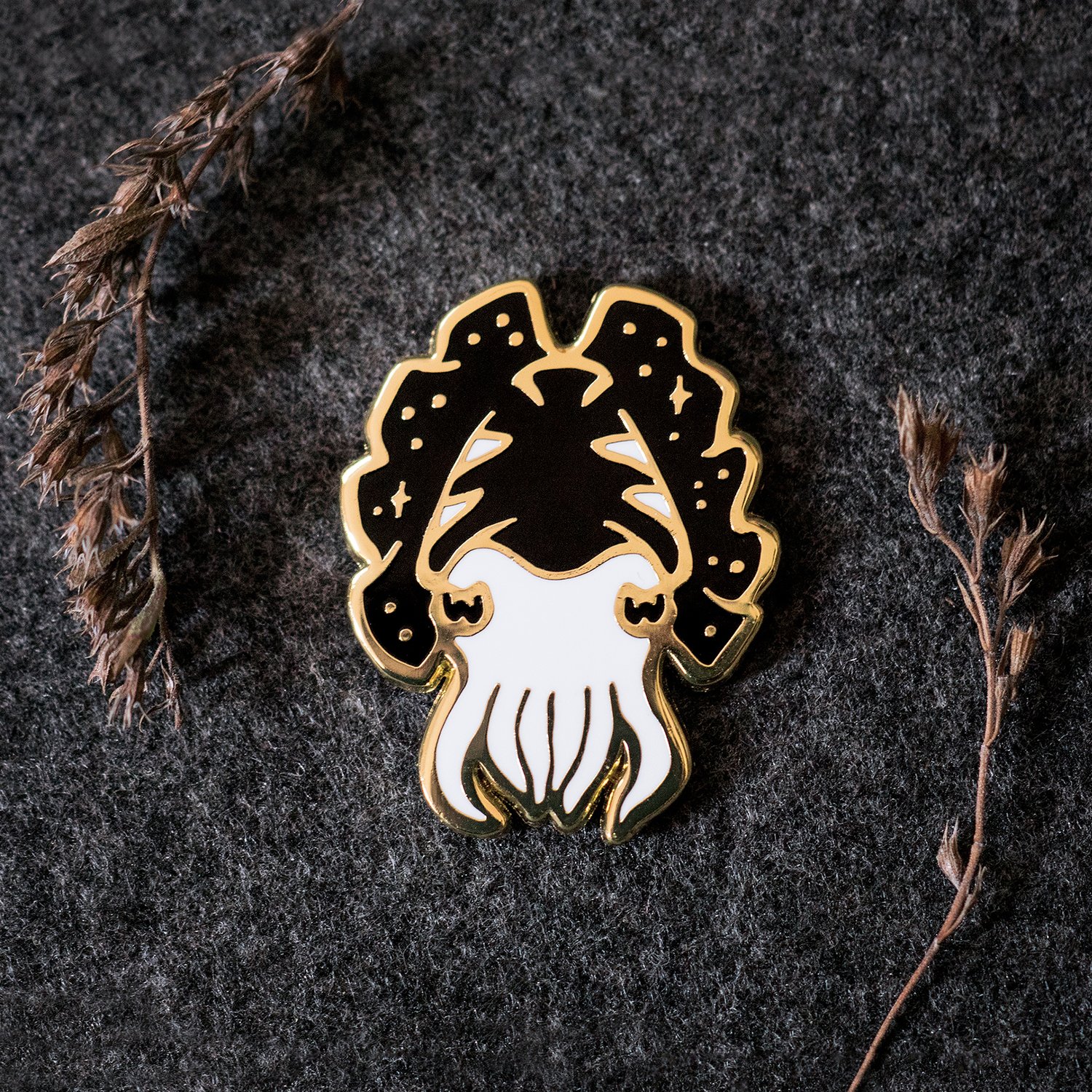 The Common Cuttlefish (Sepia officinalis) pin is part of the space themed Interstellar Invertebrates hard enamel pin set.