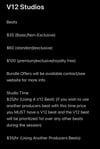 THIS PRICE IS APPLICABLE ONLY IF ARTIST(S) ARE NOT USING A V12 BEAT. If you wish to use a beat made by V12 then please purchase the appropriate time price ($25/hr) SWIPE FOR MORE INFO