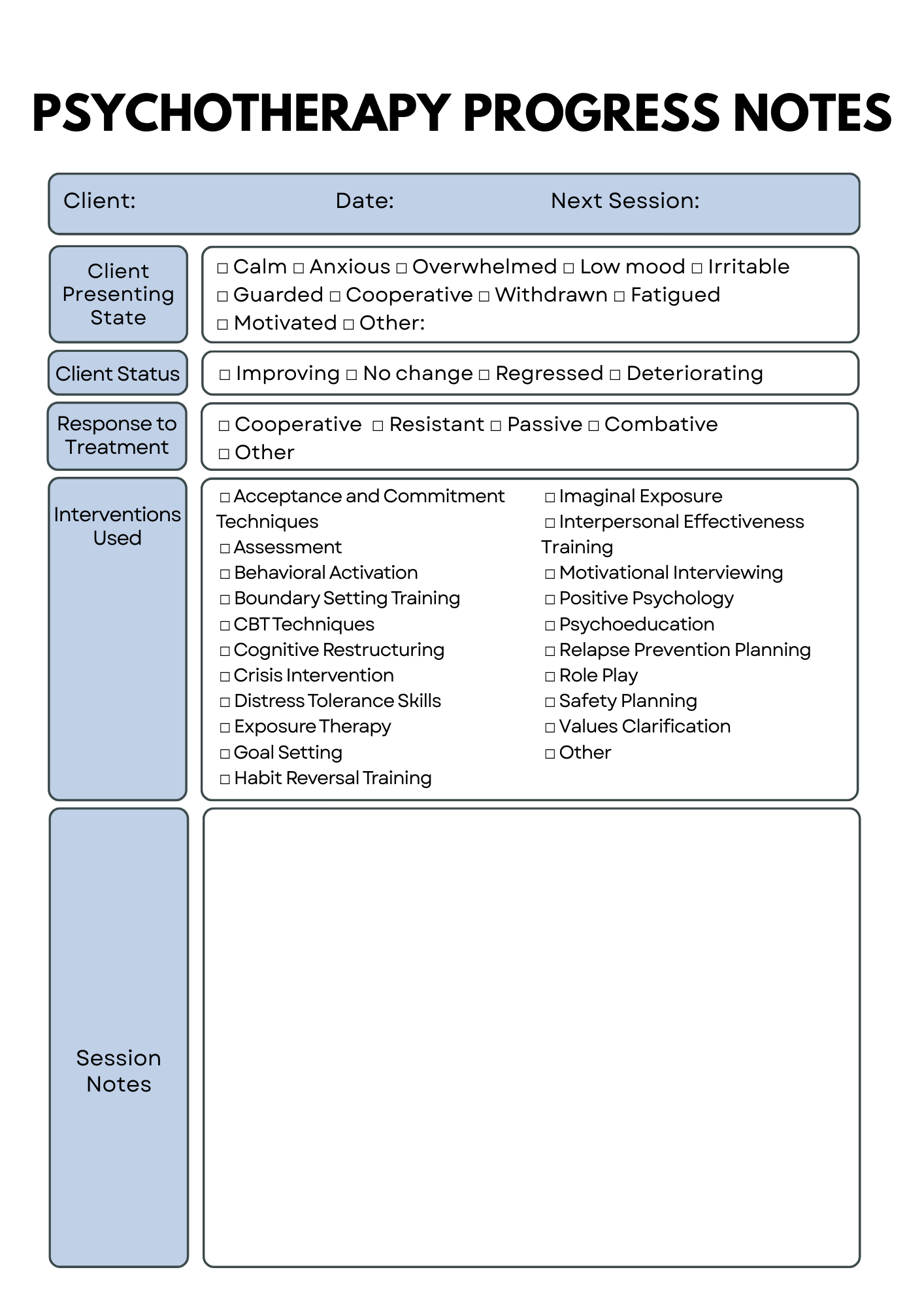 - DAP Note Template