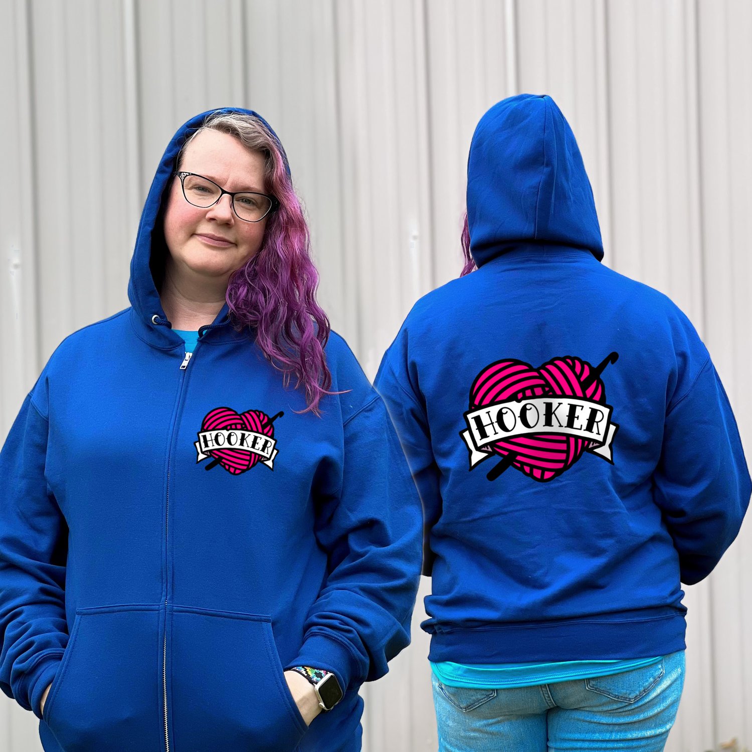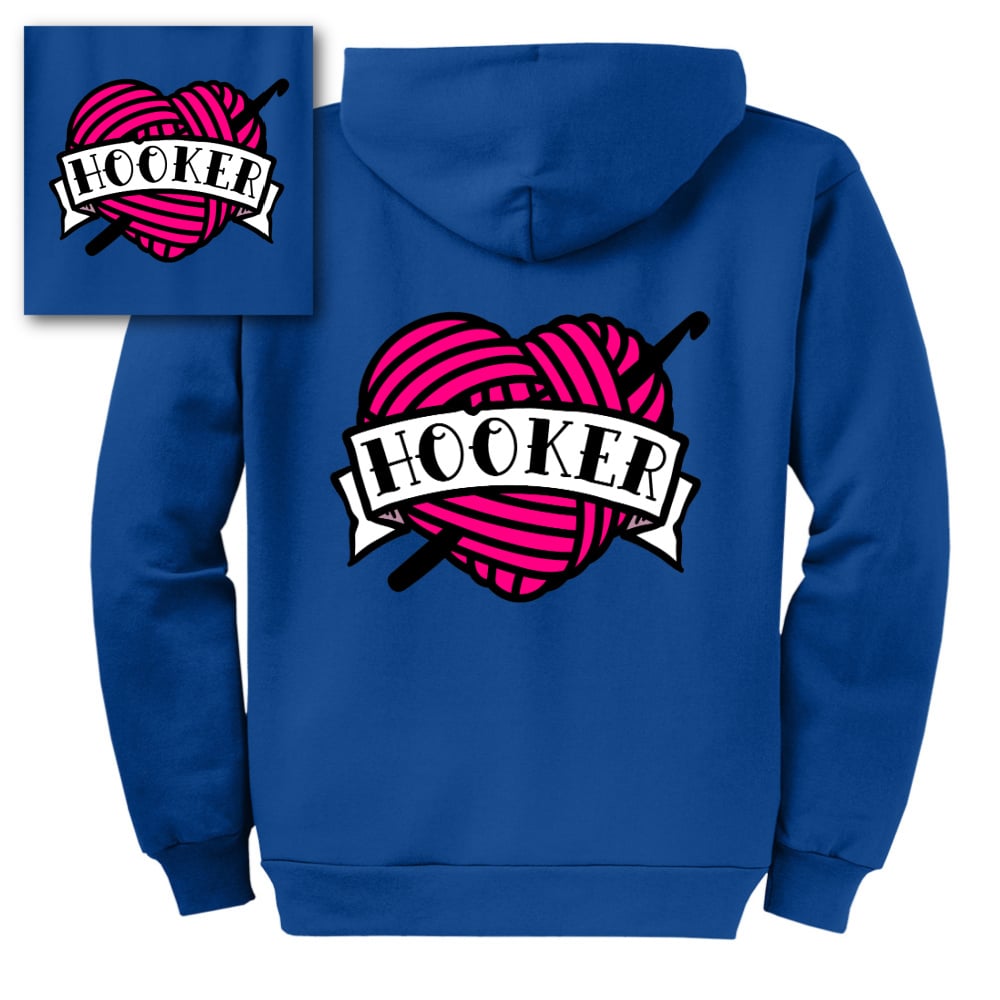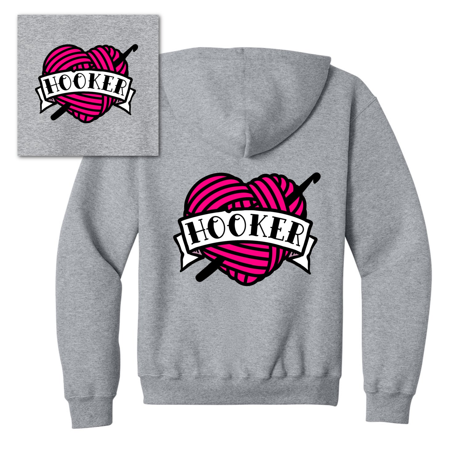 ✦ Funny Unisex Hooded Pullover with: "Hooker" Heart or "Knit Wit” Heart Tattoo style design