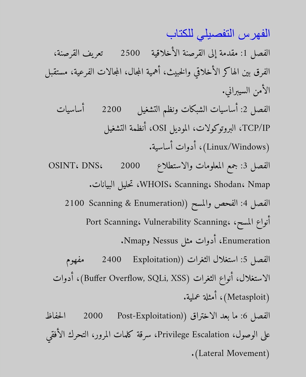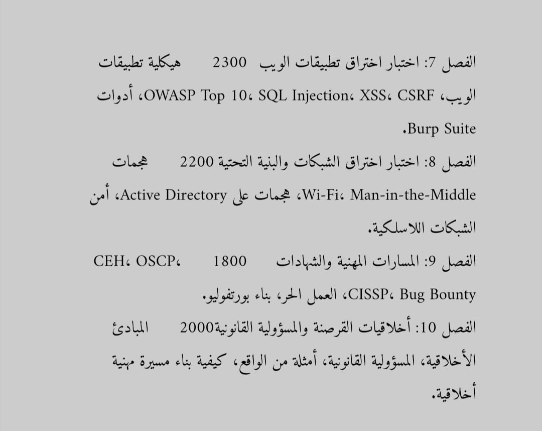 اكتشف عالم القرصنة الأخلاقية والأمن السيبراني بطريقة عملية وشاملة! هذا الكتاب يأخذك من المبتدئ إلى المحترف خطوة بخطوة، لتتعلم كيفية حماية الأنظمة، اختبار الثغرات، واستغلالها بطريقة آمنة وأخلاقية. ستبدأ بمفاهيم أساسية في الشبكات وأنظمة التشغيل، ثم تنتقل إلى جمع المعلومات، الفحص، والاستغلال العملي للثغرات باستخدام أدوات حديثة مثل Metasploit وSQLMap. بعد ذلك، ستتعلم مرحلة ما بعد الاختراق: تصعيد الصلاحيات، التحرك الجانبي، والحفاظ على الوصول لجمع المعلومات المهمة، مع أمثلة عملية لكل خطوة. كما يغطي الكتاب اختبار اختراق تطبيقات الويب والشبكات، ويقدم خارطة مهنية وشهادات معترف بها عالميًا مثل CEH وOSCP، لتضمن مسيرة احترافية في الأمن السيبراني. وأخيرًا، يتناول الكتاب الأخلاقيات والمسؤولية القانونية، لتصبح هاكر أخلاقي محترف قادر على حماية الأنظمة بثقة ومهارة.