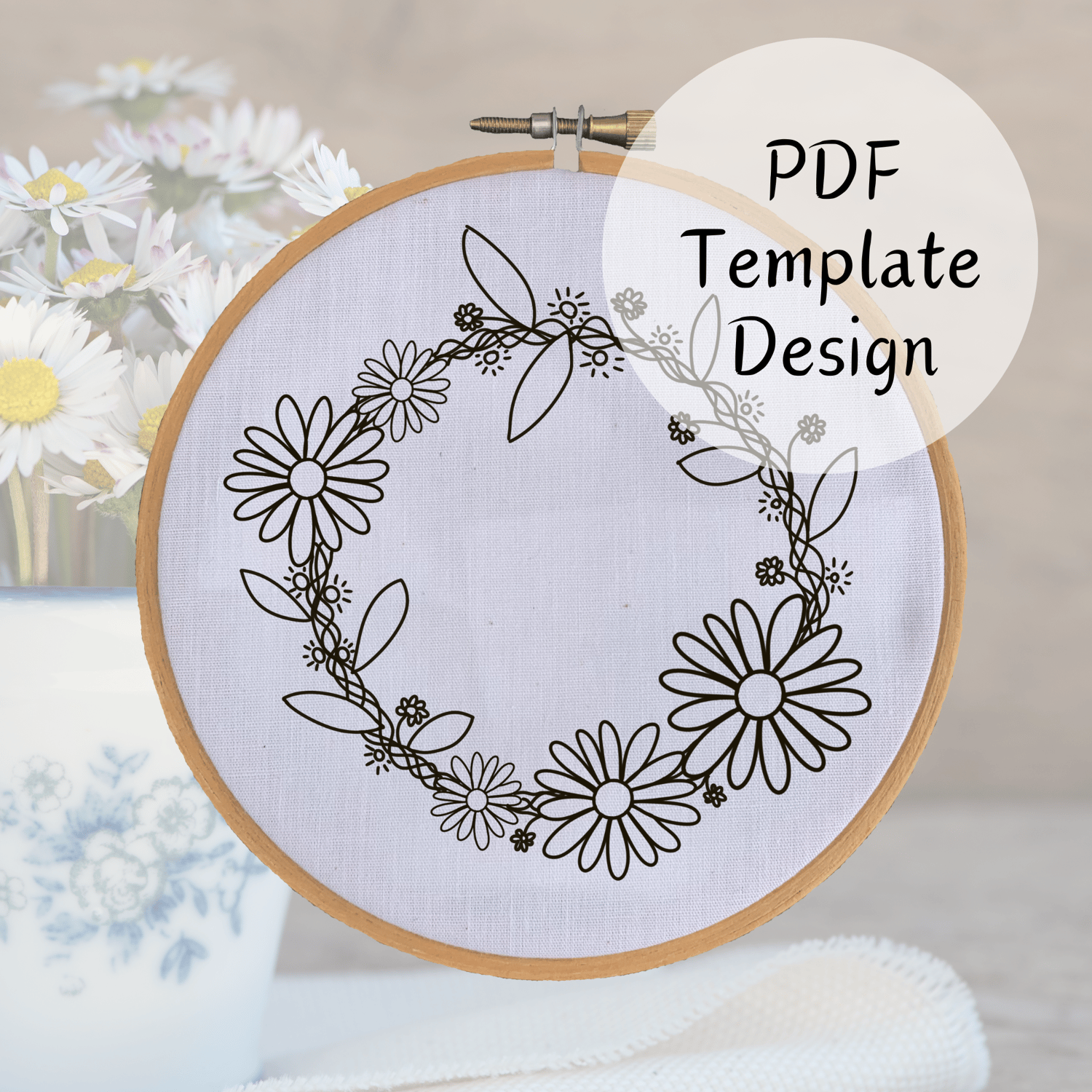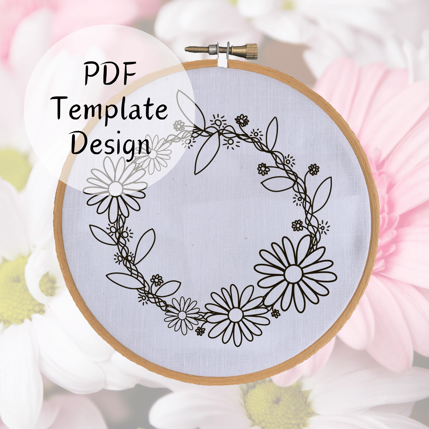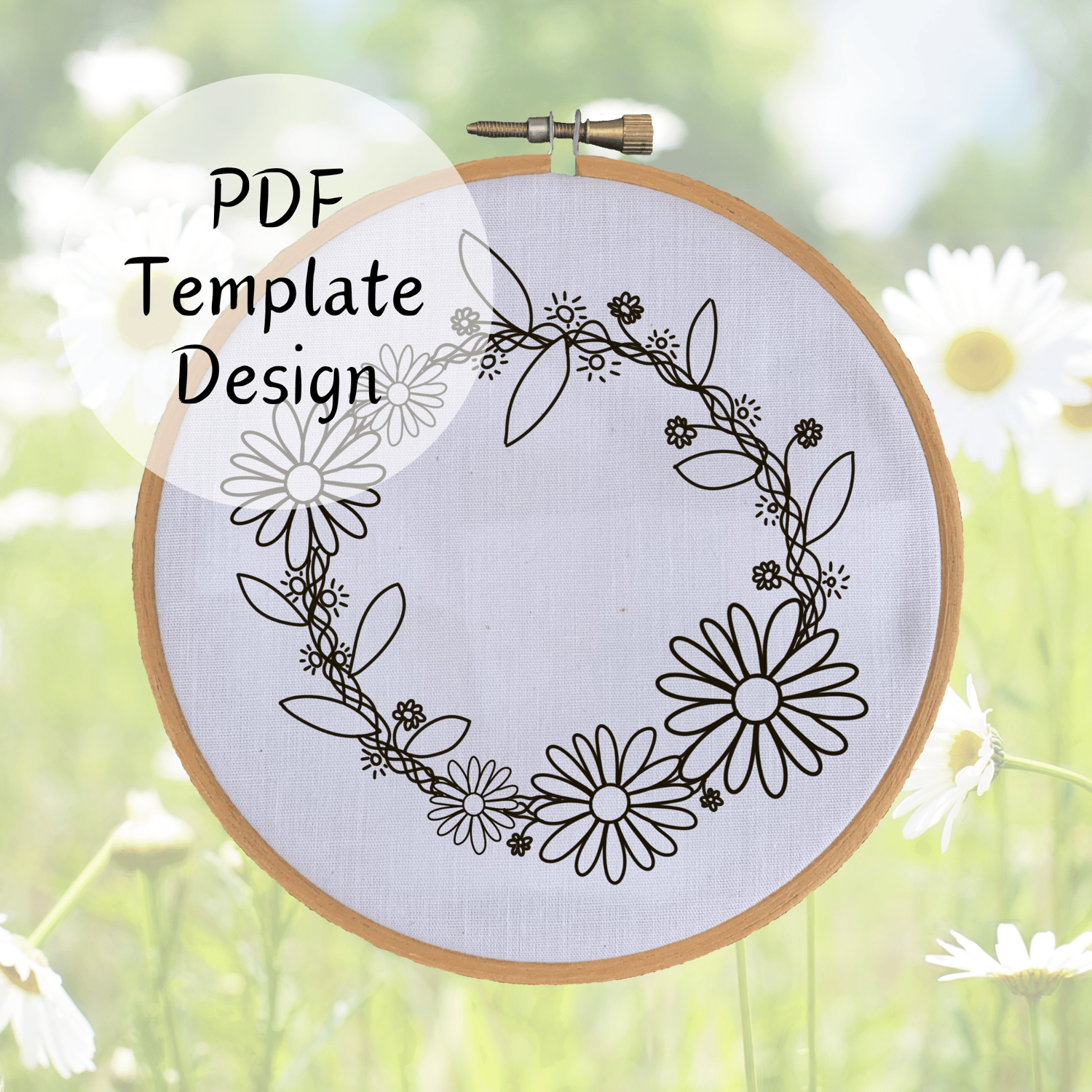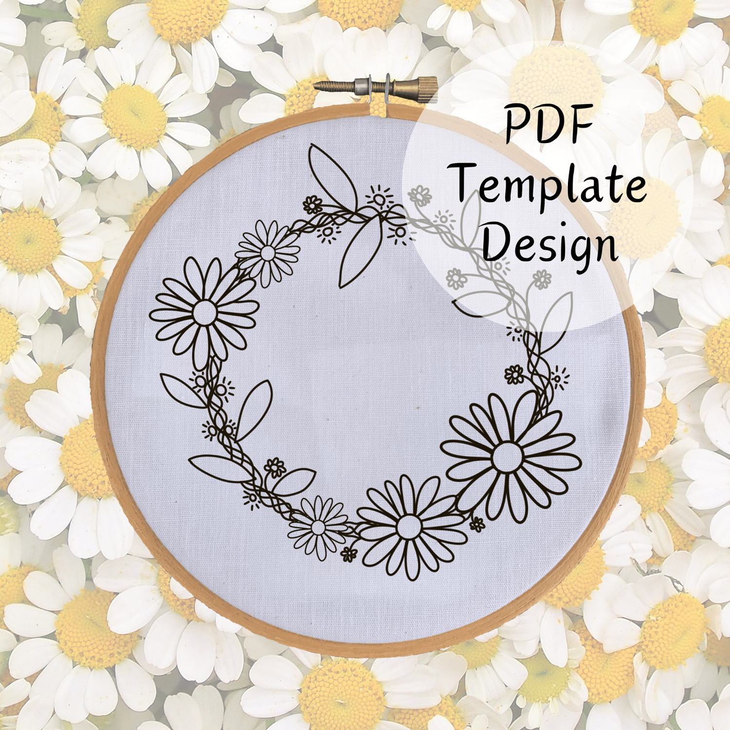Daisy Chain Wreath Hand Embroidery Pattern - DIY Design