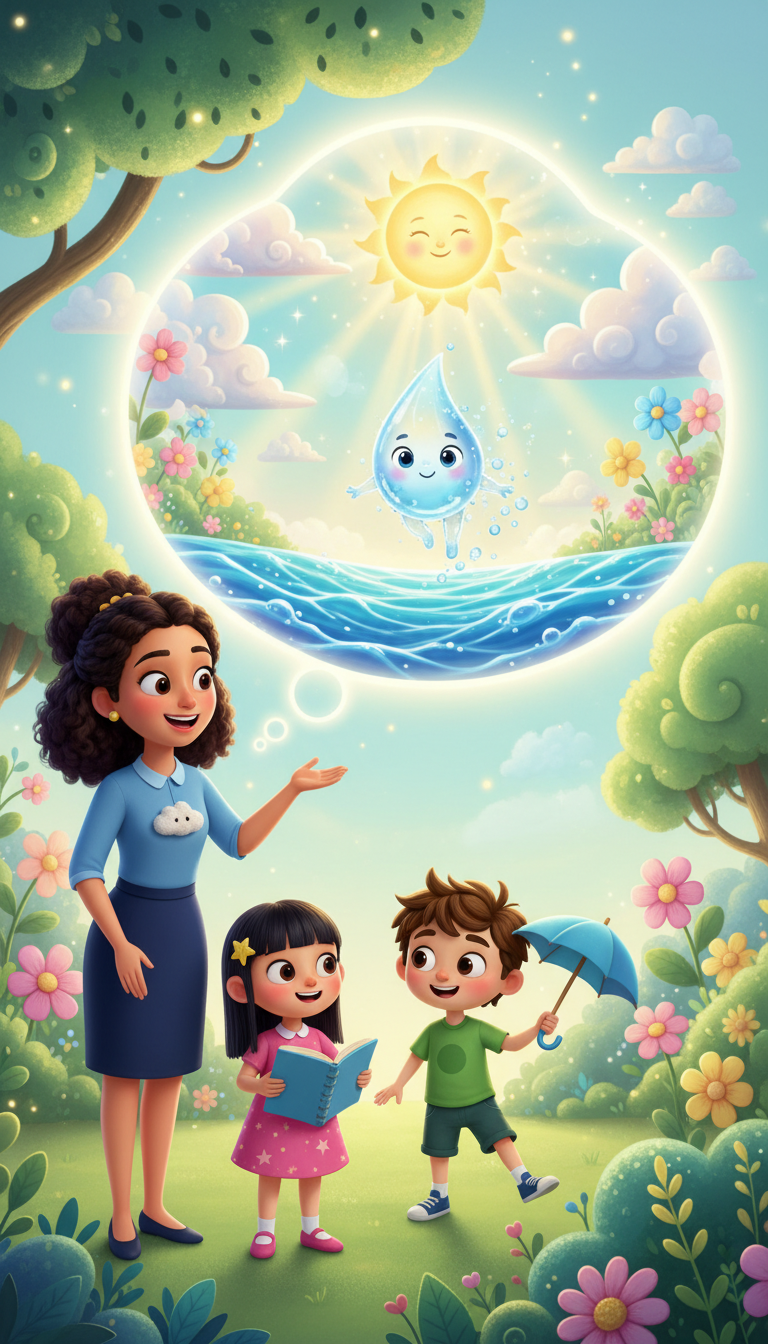 This delightful PDF storybook follows Ms. Sona and her two curious students, Arjun and Nila, as they discover how Piko travels from the ocean to the clouds and back to earth—explaining evaporation, condensation, and precipitation in a simple, magical way.