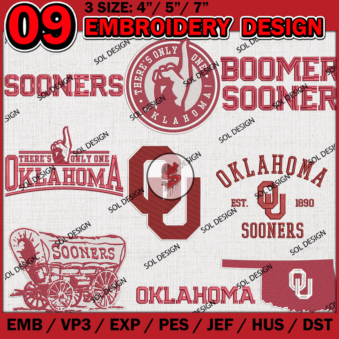 9 Oklahoma Sooners Bundle Embroidery Files, College Football Embroidery Designs, NCAA Oklahoma Sooners Machine embroidery Design Bundle, Ncaa Oklahoma Logo bundle, Digital Download