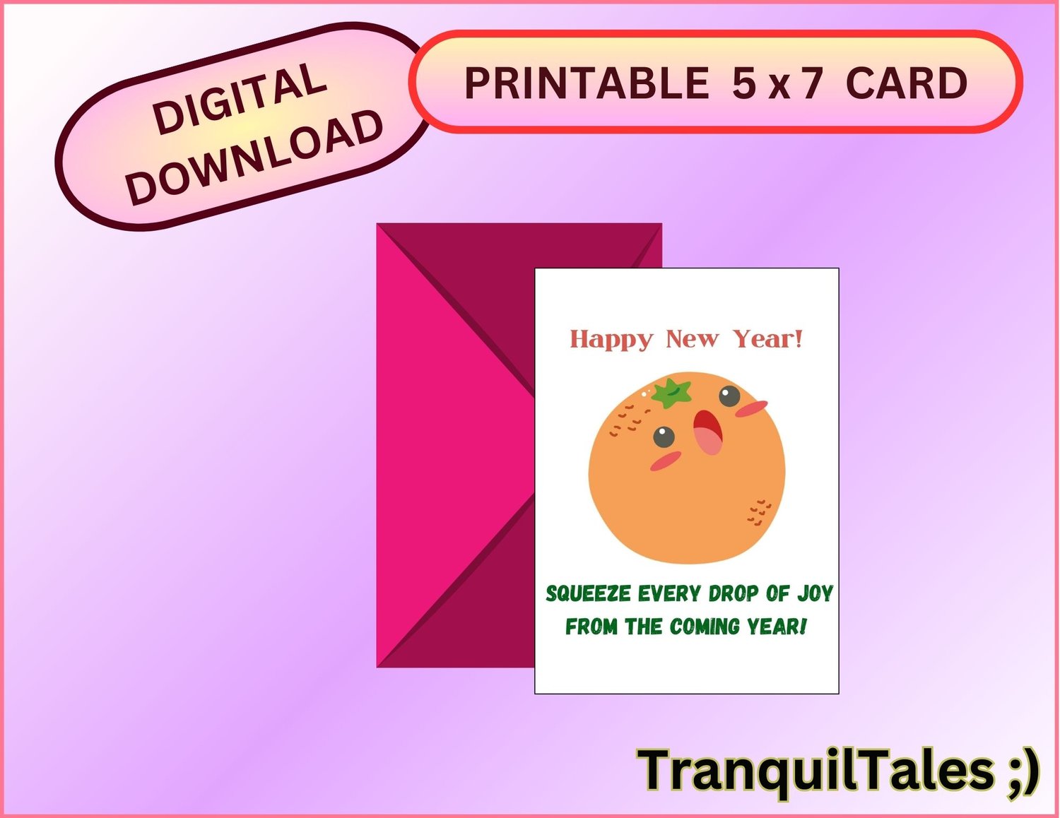 Happy New Year! SQUEEZE EVERY DROP OF JOY FROM THE COMING YEAR! Card - 5" x 7" inches - New Year card - PDF File
