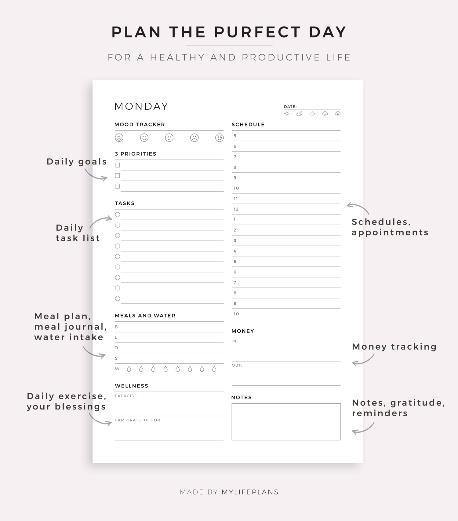 7 Day Planner Printable, Daily Planner, Weekly Planner, Daily To Do List for Work / Personal Life, A4/Letter Size