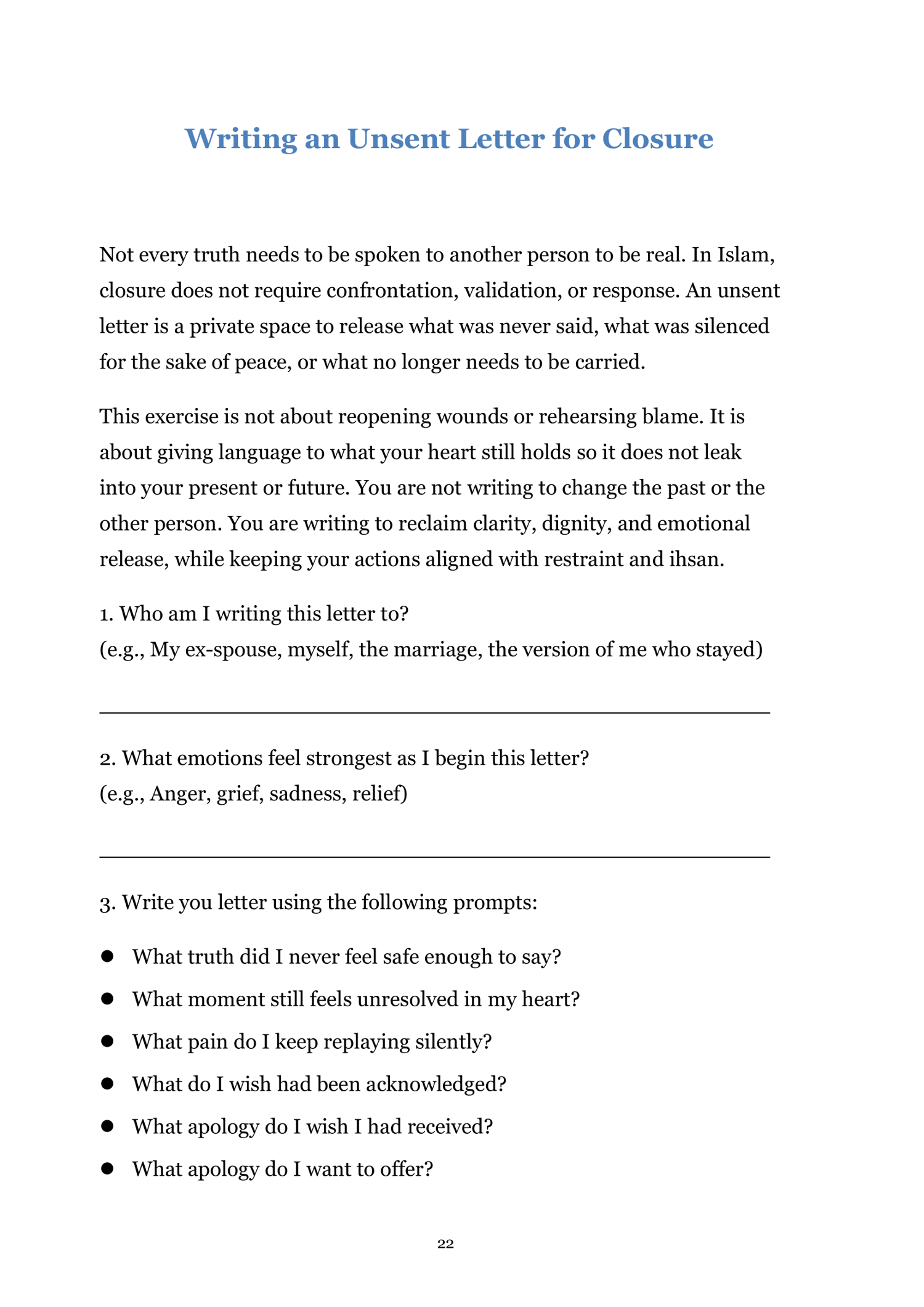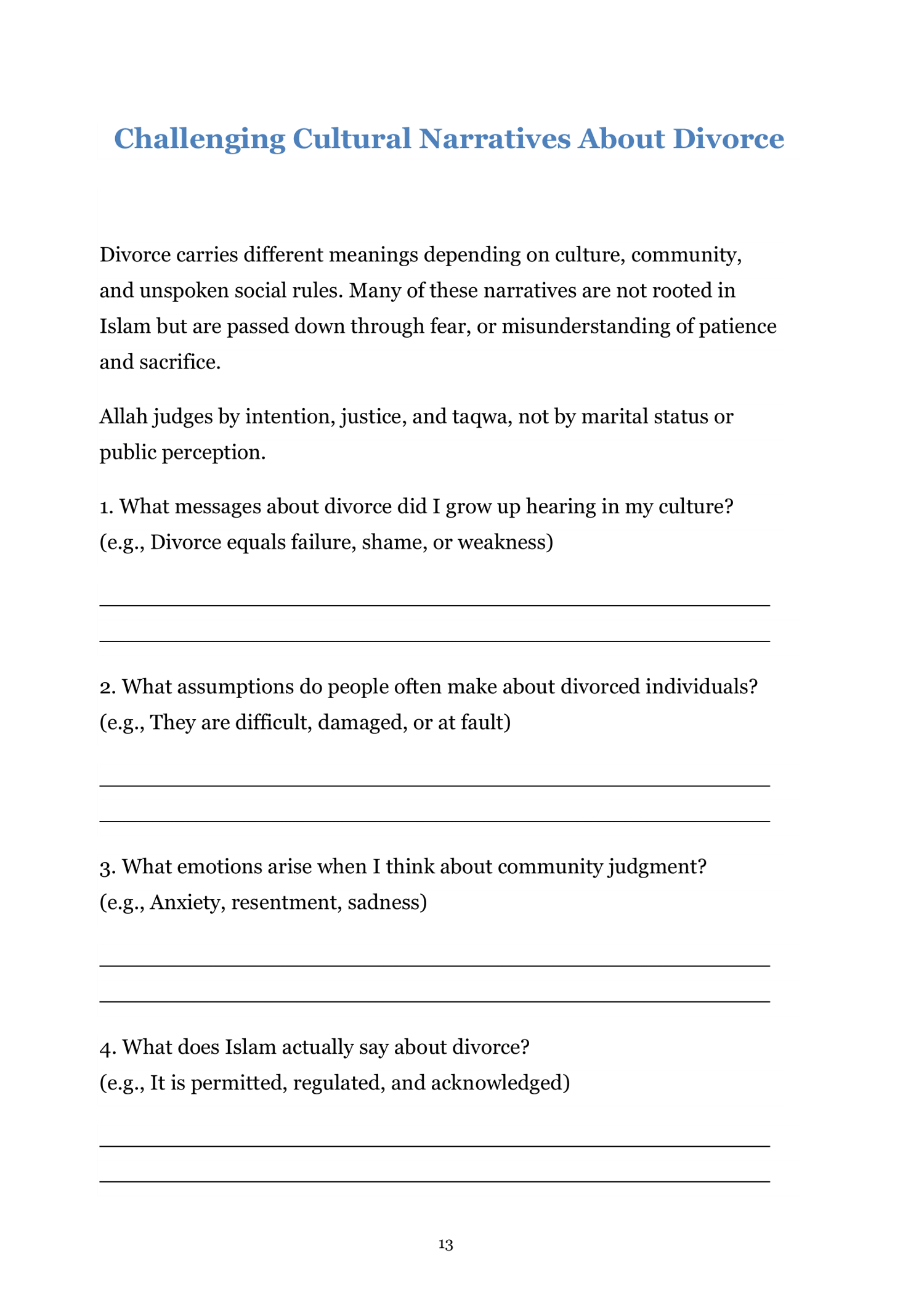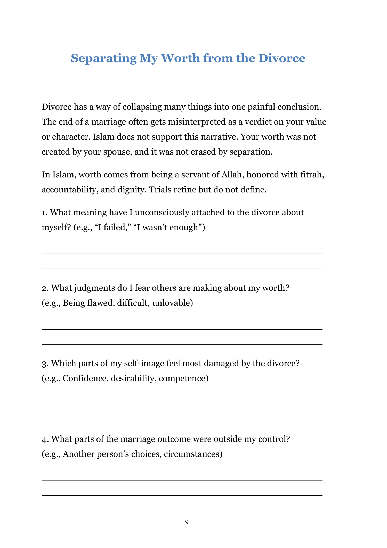 Download your Healing After Divorce Worksheets and begin rebuilding your life with sabr, clarity, and self-compassion. Your pain is seen by Allah, your healing is valid, and your story is not over.