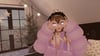 Items: Bunny plush on head and in hand, Knife in mouth and hand, and vape