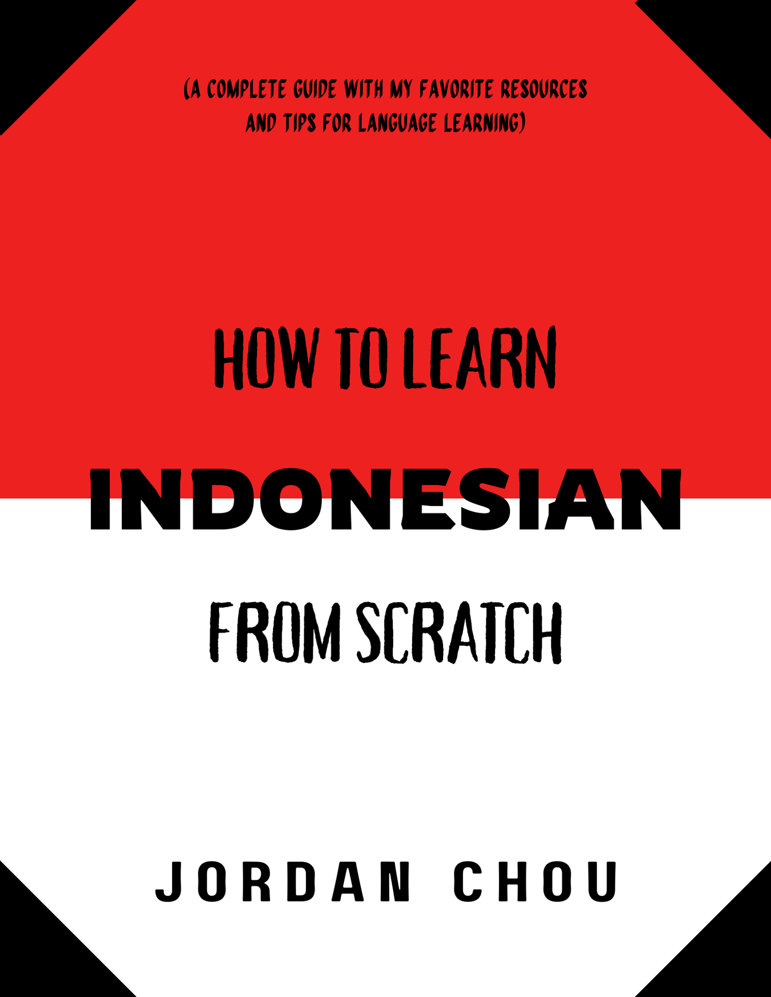 A 29-page guide of the basics to begin learning Indonesian, including my favorite tips and tricks and a vast number of resources to help you on your language-learning journey. This is NOT meant to be a textbook, but rather a guide on HOW to learn a language effectively. Its goal is to provide useful resources, language-learning techniques, and motivation to stay consistent.