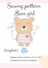 Printable Bear Girl Sewing Pattern, Sewing project (PDF file)