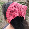 Naseem means breeze in Arabic. This stylish kerchief, with attached headband, can be worn in the breezy spring or fall, or as a shade from summer sun. It is a sweet, little, introduction to knitted lace which creates a pretty accessory in a short time. The lace is taken from a traditional Shetland pattern and used in a non-traditional way and is great for quick gifts or using up remnants from other fingering projects.