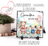 Grandma/Mother’s Day. 2 backgrounds, 6 female bears, 16 child bears. Bear clipart. Sublimation or print. Personalise. 26 PNGs.