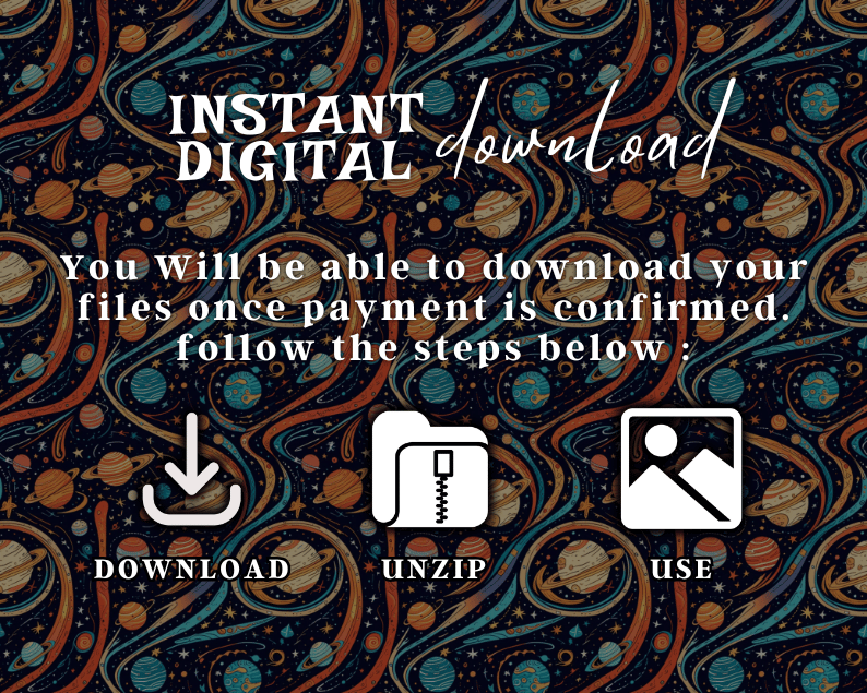 Whether you're crafting galactic-themed projects or adding a touch of astronomy to your brand, these digital patterns are designed to orbit your imagination and fuel your creativity.