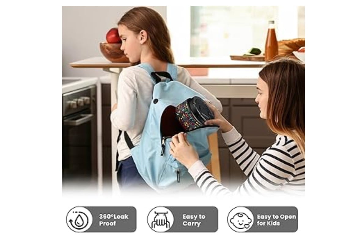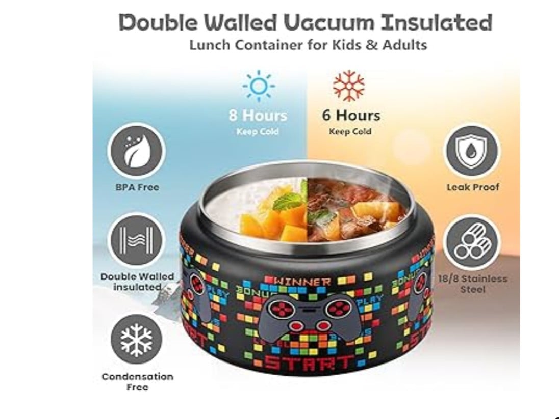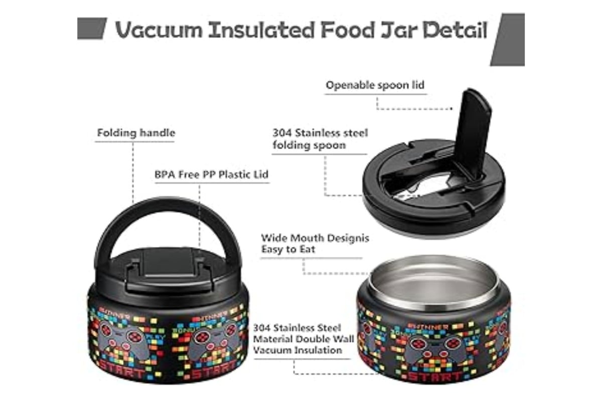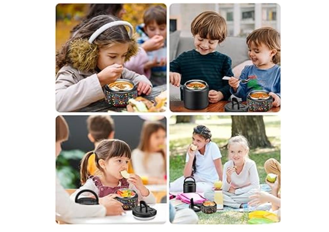 100% Leak Proof Design: our food thermos comes with a thick silicone gasket. You can put it into your lunch bag without worrying about spillage. The insulated thermal food jar comes with a stainless steel spoon, convenient for your child to use during lunch.