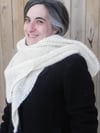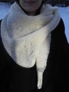 When winter is at its coldest, scarves and shawls may need a bit less lace and more coverage. Distal is a reversible shawl that covers even your most distant limbs! Wrap Distal like a scarf or a cowl, over your head, around your neck, your face, or hanging down for ornamentation instead. The lofty, light texture of Létt-Lopi, an aran-weight single ply wool, creates a draped, lacy effect when knitted on larger needles. This asymmetrical shape is a quick knit, requiring only simple stockinette knitting, yarn overs, decreasing, and other basic skills. Use your crochet skills for an optional single crochet edging or add your own knit one as a finishing touch.