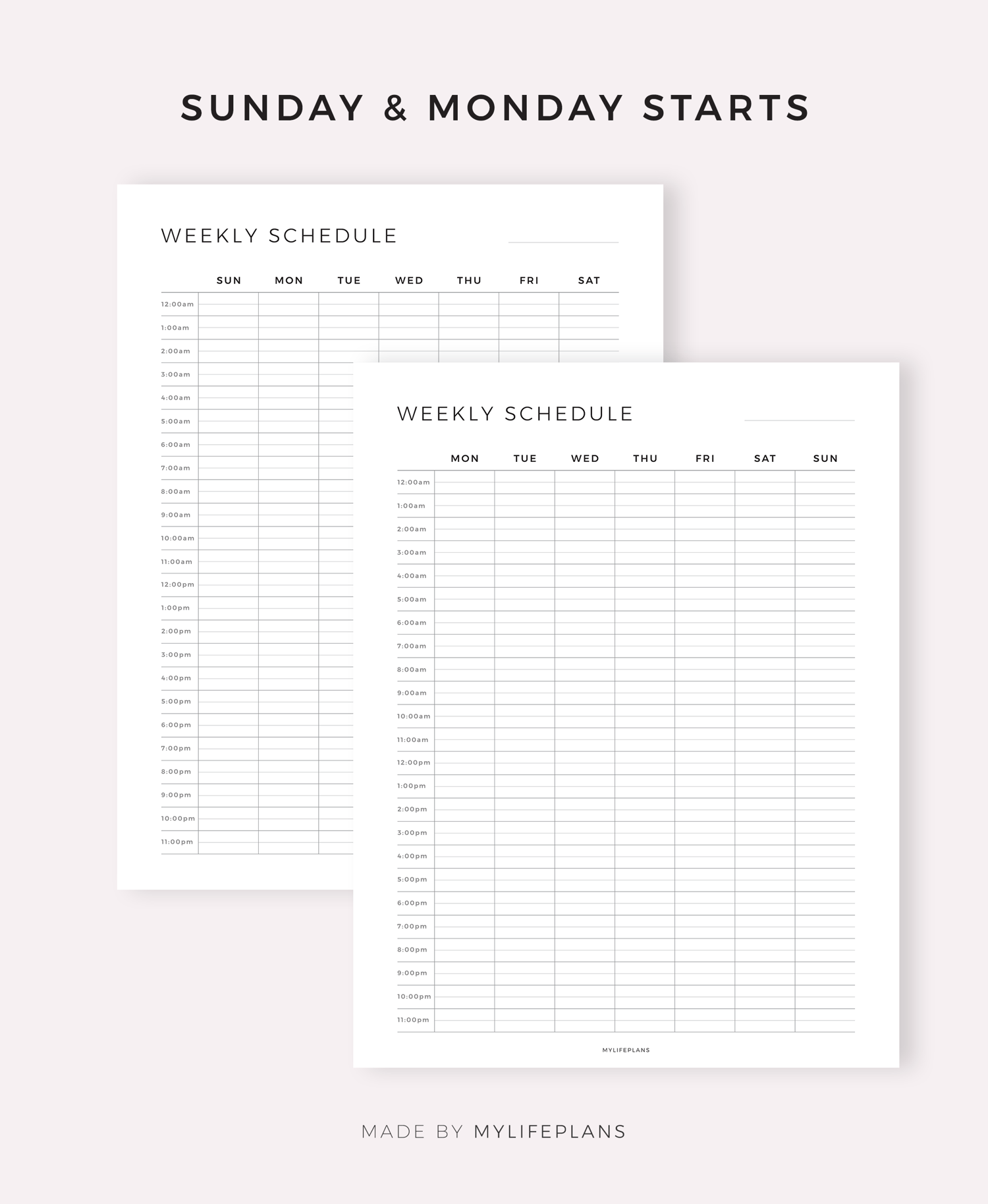 24 Hour Weekly Schedule, Digital Planner for Goodnotes, Notability, Ipad