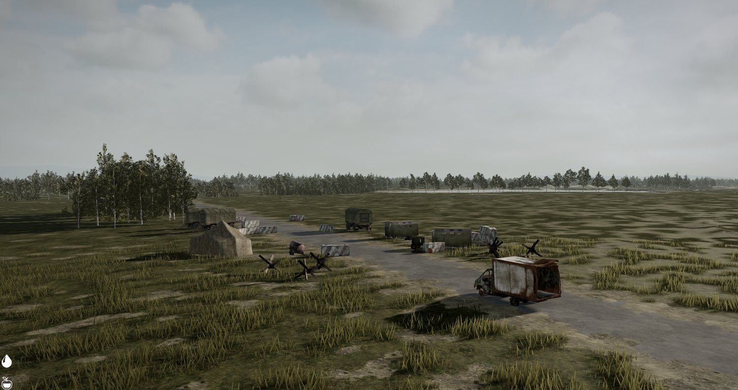 The terrain is primarily flat but also curved and is primarily open, with a lot of fields and treelines. It is made for long distance combat and most of the buildings don't have interiors.