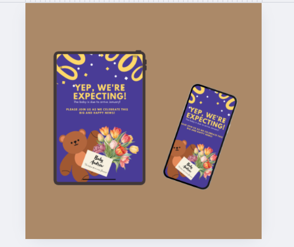 Pregnancy Announcement Canva Editable l Neutral Boho Simple Social Media Reveal Teddy Bear Simple (Canva Template Digital Download)