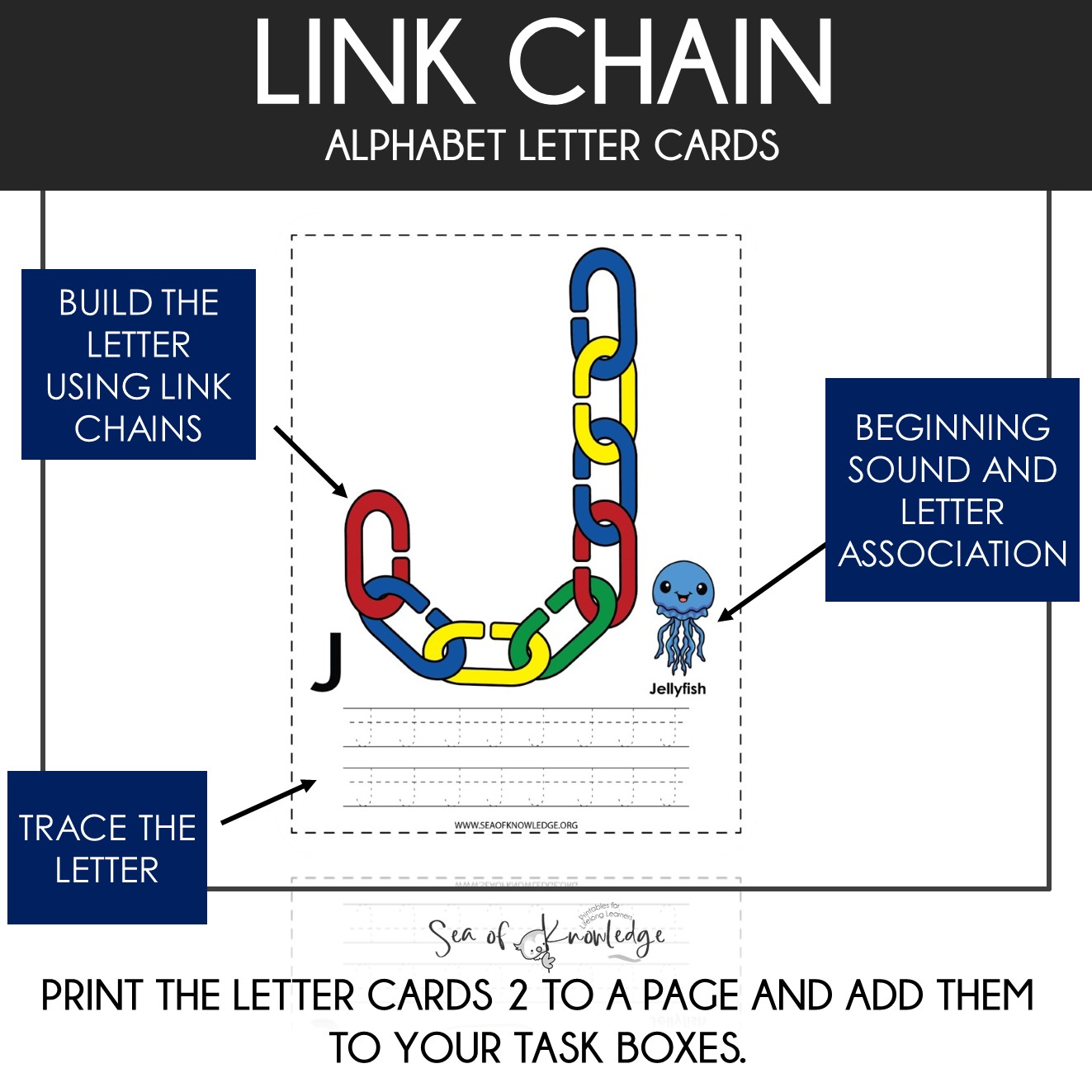 - A-Z COLOR LINK CHAIN TASK CARDS (TRACING LETTERS)